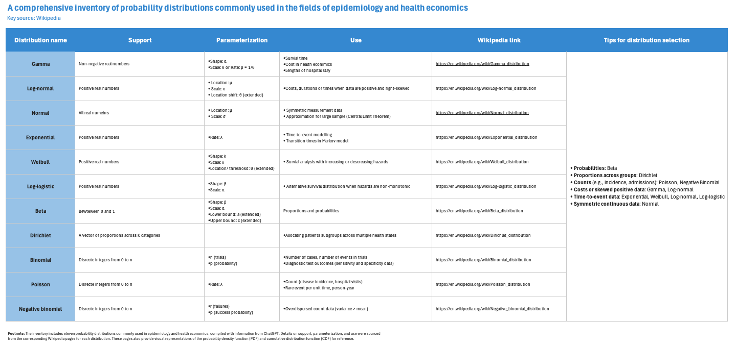 Choosing an appropriate probability distribution for each model input is the first and most critical step in PSA. This selection requires both an understanding of statistical distributions and domain knowledge in health economics or epidemiology.